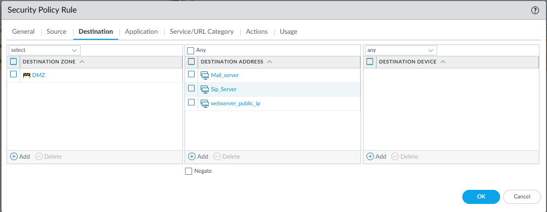 DMZ - Destination Address:
