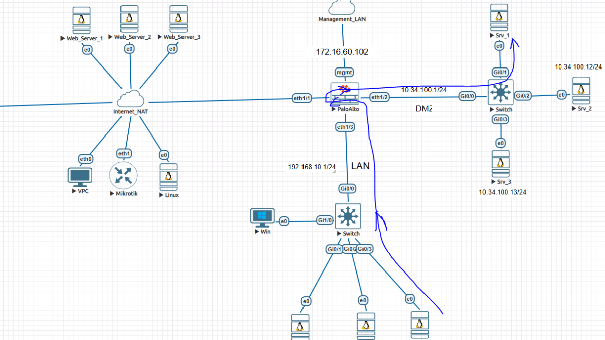 In this blog, I will demonstrate User NAT / Destination NAT (UNAT) configuration on a Palo Alto Networks firewall using a practical lab setup with LAN, WAN, and DMZ zones.